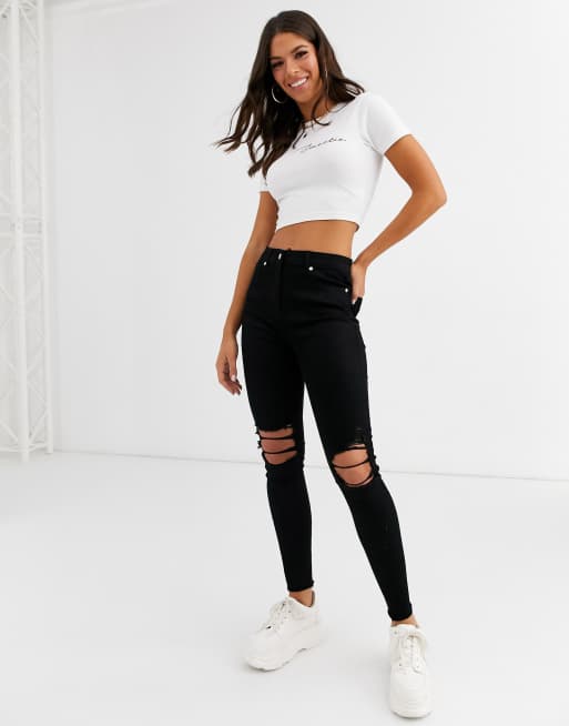 Criminal Damage Sorte Skinny Jeans Med Huller In 2022 Super Skinny Jeans Sweatshirts Jeans